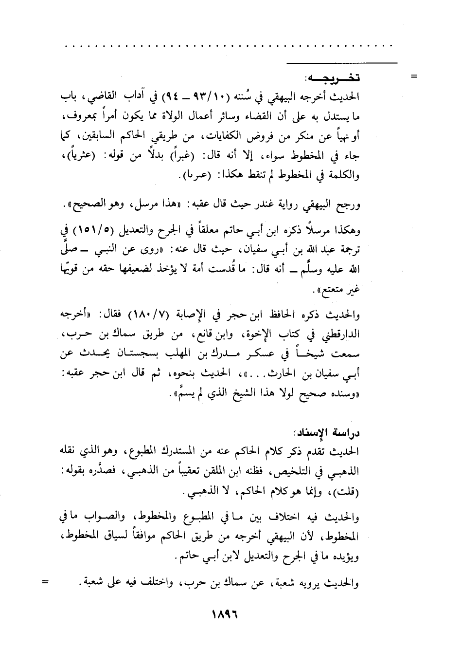 والحديث يرويه شعبة، عن سماك بن حرب، واختلف فيه على شعبة. =