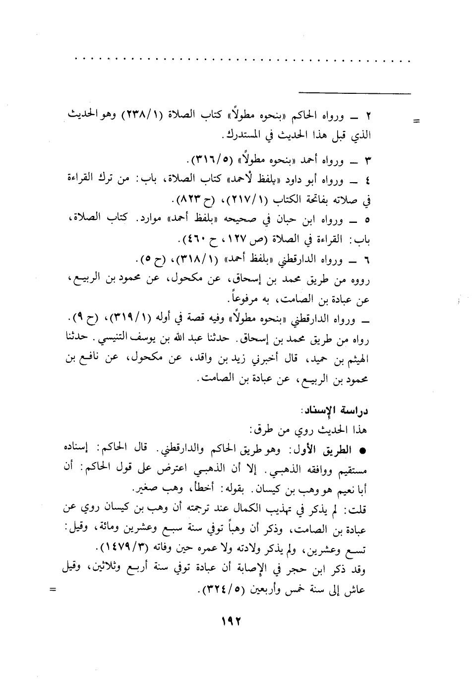 5 - ورواه ابن حبان في صحيحه "بلفظ أحمد" موارد. كتاب الصلاة، باب: القراءة في الصلاة (ص 127، ح 460).