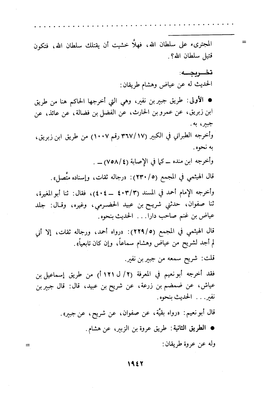 * الأولى: طريق جبير بن نفير، وهي التي أخرجها الحاكم هنا من طريق ابن زبريق، عن عمرو بن الحارث، عن الفضل بن فضالة، عن عائذ، عن جبير، به.