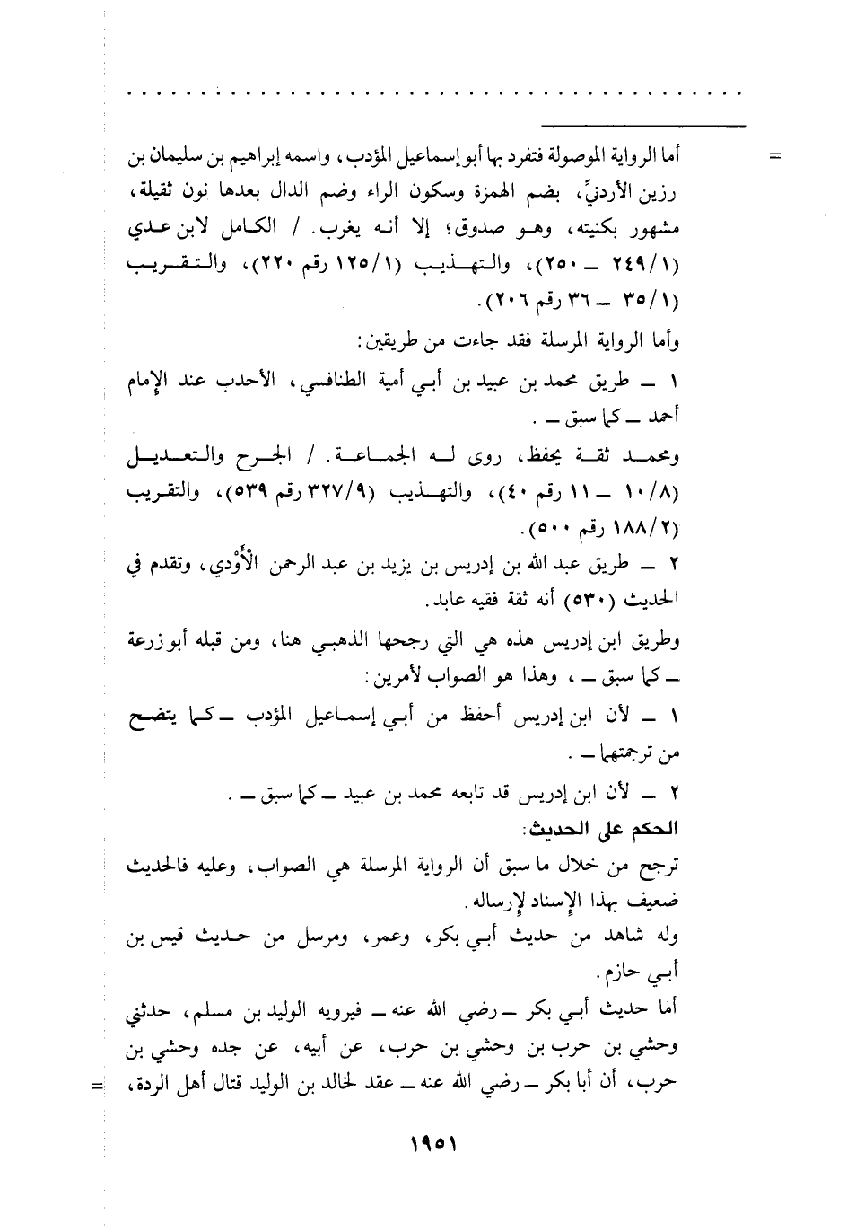 وطريق ابن إدريس هذه هي التي رجحها الذهبي هنا، ومن قبله أبو زرعة -كما سبق-، وهذا هو الصواب لأمرين: