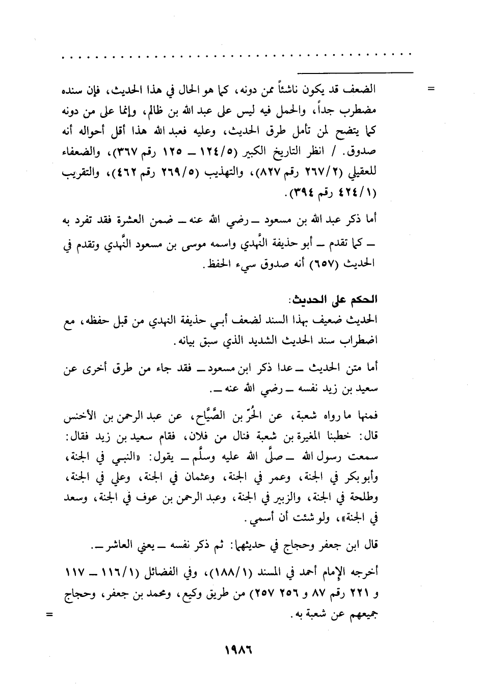 أما ذكر عبد الله بن مسعود -رضي الله عنه- ضمن العشرة فقد تفرد به -كما تقدم- أبو حذيفة النَّهدي واسمه موسى بن مسعود النَّهدي وتقدم في الحديث (657) أنه صدوق سيء الحفظ.