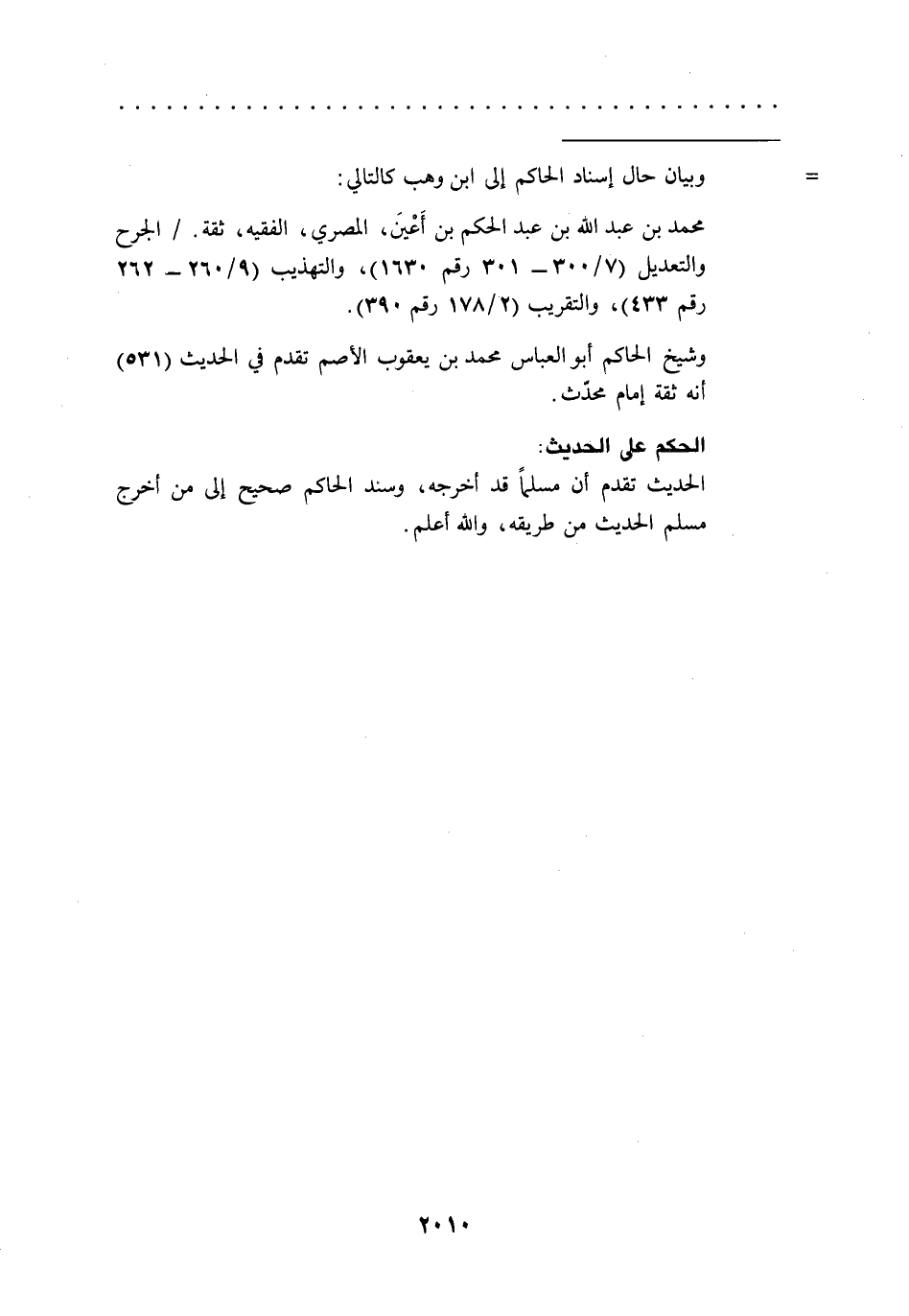 = وبيان حال إسناد الحاكم إلى ابن وهب كالتالي: