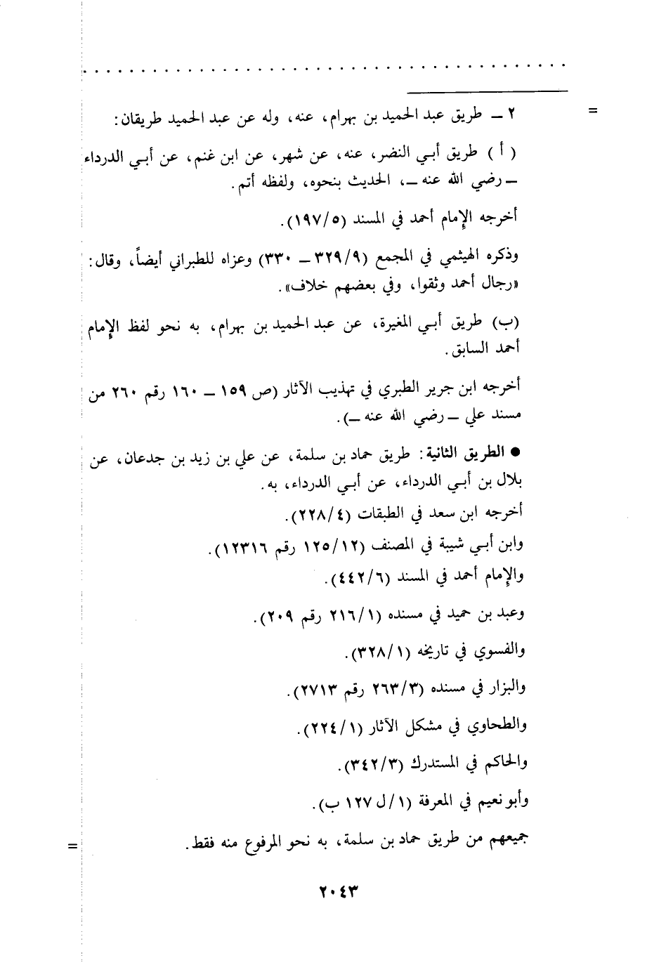 (أ) طريق أبي النضر، عنه، عن شهر، عن ابن غنم، عن أبي الدرداء -رضي الله عنه-، الحديث بنحوه، ولفظه أتم.