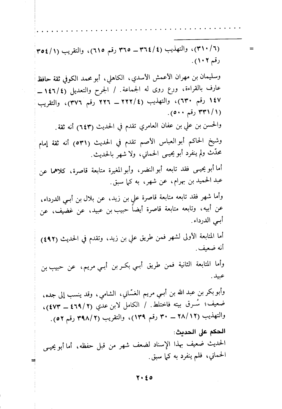 وأما شهر فقد تابعه متابعة قاصرة علي بن زيد، عن بلال بن أبي الدرداء، عن أبيه، وتابعه متابعة قاصرة أيضاً حبيب بن عبيد، عن غضيف، عن أبي الدرداء.