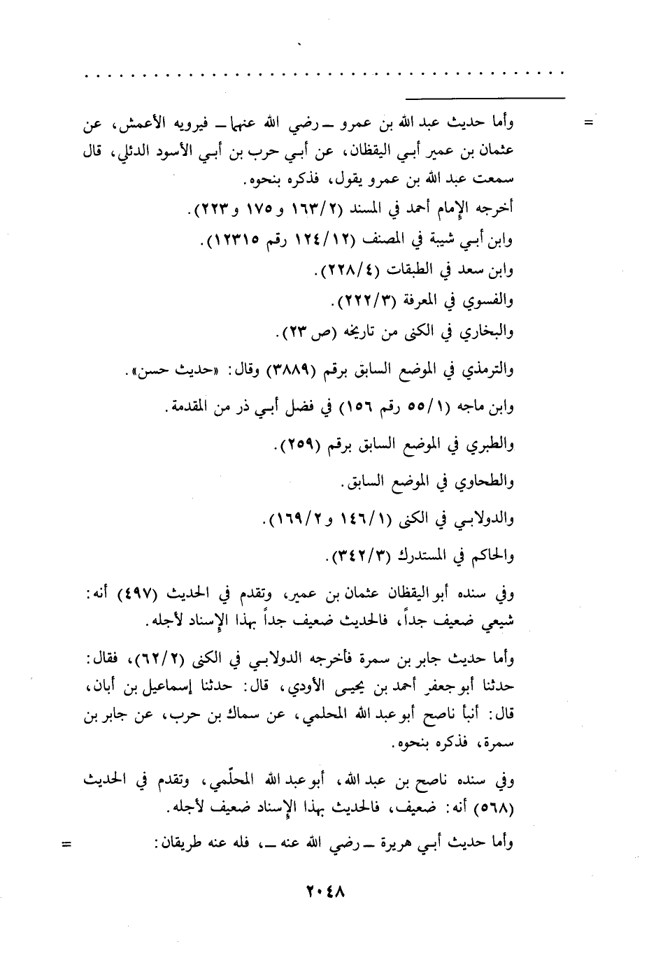 = وأما حديث عبد الله بن عمرو -رضي الله عنهما- فيرويه الأعمش، عن عثمان بن عمير أبي اليقظان، عن أبي حرب بن أبي الأسود الدئلي، قال سمعت عبد الله بن عمرو يقول، فذكره بنحوه.