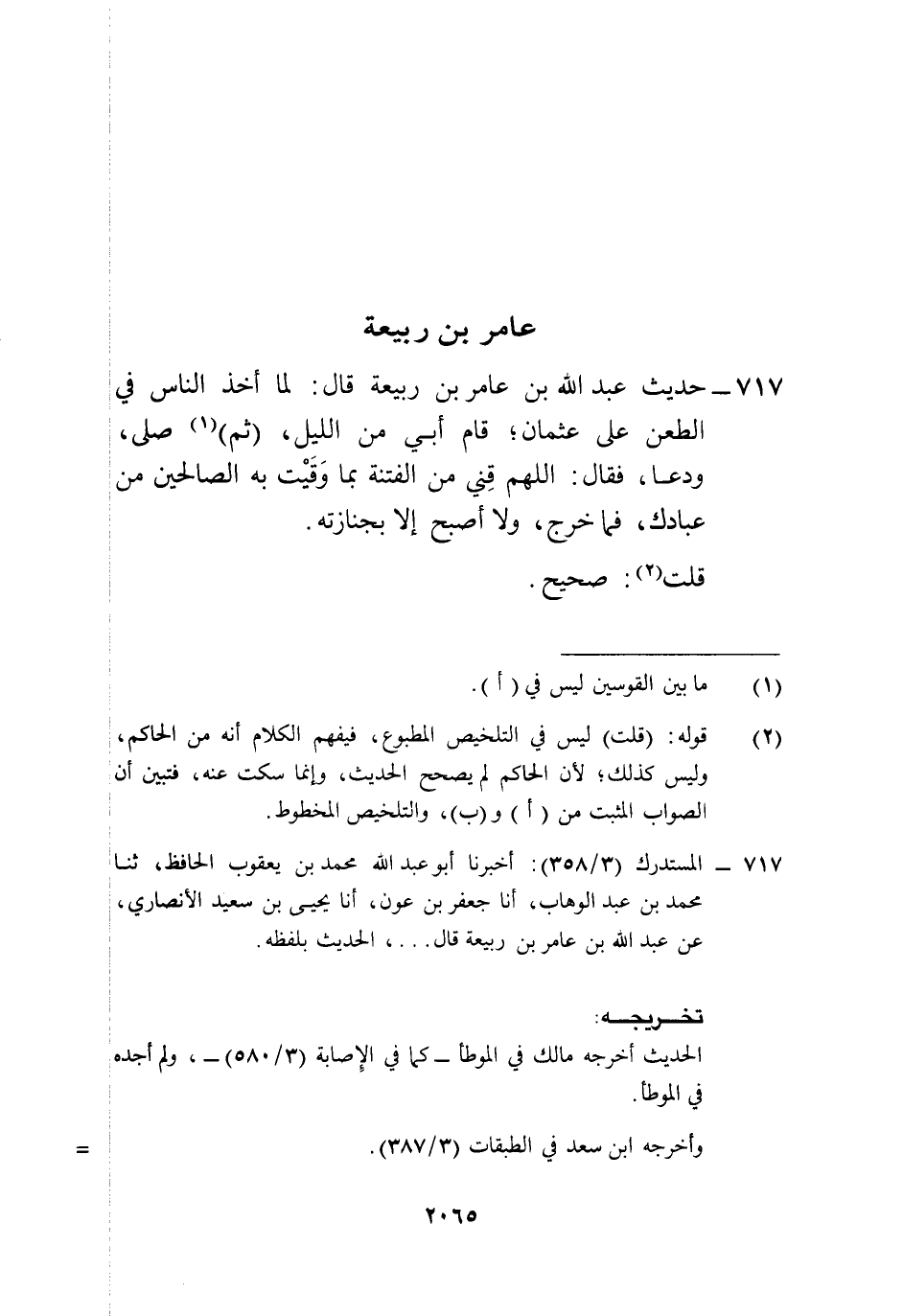 717 - المستدرك (3/ 358): أخبرنا أبو عبد الله محمد بن يعقوب الحافظ، ثنا محمد بن عبد الوهاب، أنا جعفر بن عون، أنا يحيى بن سعيد الأنصاري، عن عبد الله بن عامر بن ربيعة قال ... ، الحديث بلفظه.