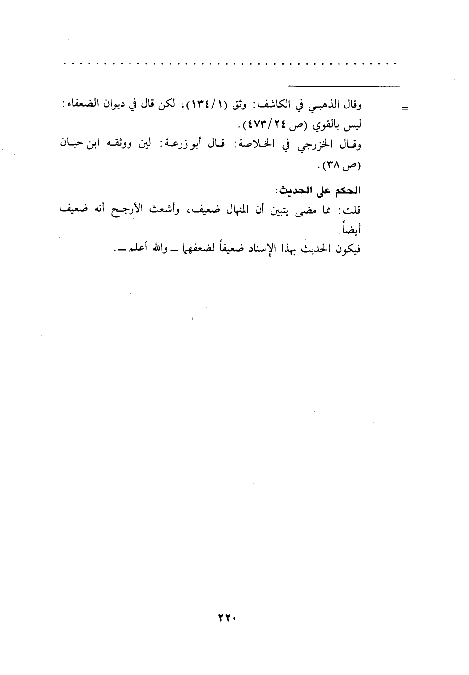 قلت: مما مضى يتبين أن المنهال ضعيف، وأشعث الأرجح أنه ضعيف أيضاً.