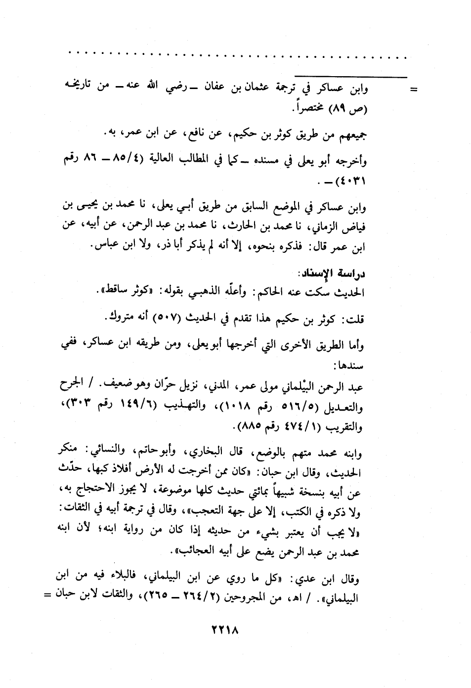 عبد الرحمن البيْلماني مولى عمر، المدني، نزيل حرّان وهو ضعيف./ الجرح والتعديل (5/ 516رقم1018)، والتهذيب (6/ 149رقم 303)، والتقريب (1/ 474 رقم 885).