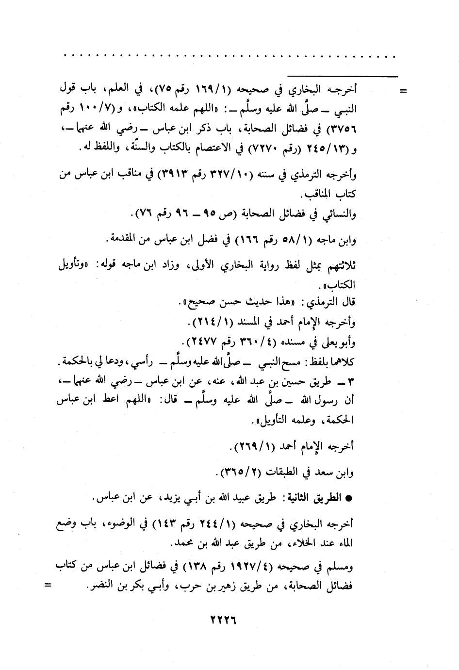 3 - طريق حسين بن عبد الله، عنه، عن ابن عباس -رضي الله عنهما-، أن رسول الله -صلى الله عليه وسلم- قال: "اللهم اعط ابن عباس الحكمة، وعلمه التأويل".