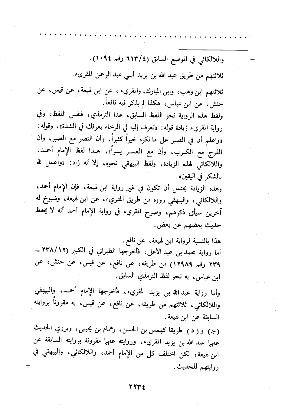(جـ) و (د) طريقا كهمس بن الحسن، وهمام بن يحيى، ويروي الحديث عنهما عبد الله بن يزيد المقريء، وروايته عنهما مقرونة بروايته السابقة عن ابن لهيعة، لكن اختلف كل من الإمام أحمد، واللالكائي، والبيهقي في روايتهم للحديث. =