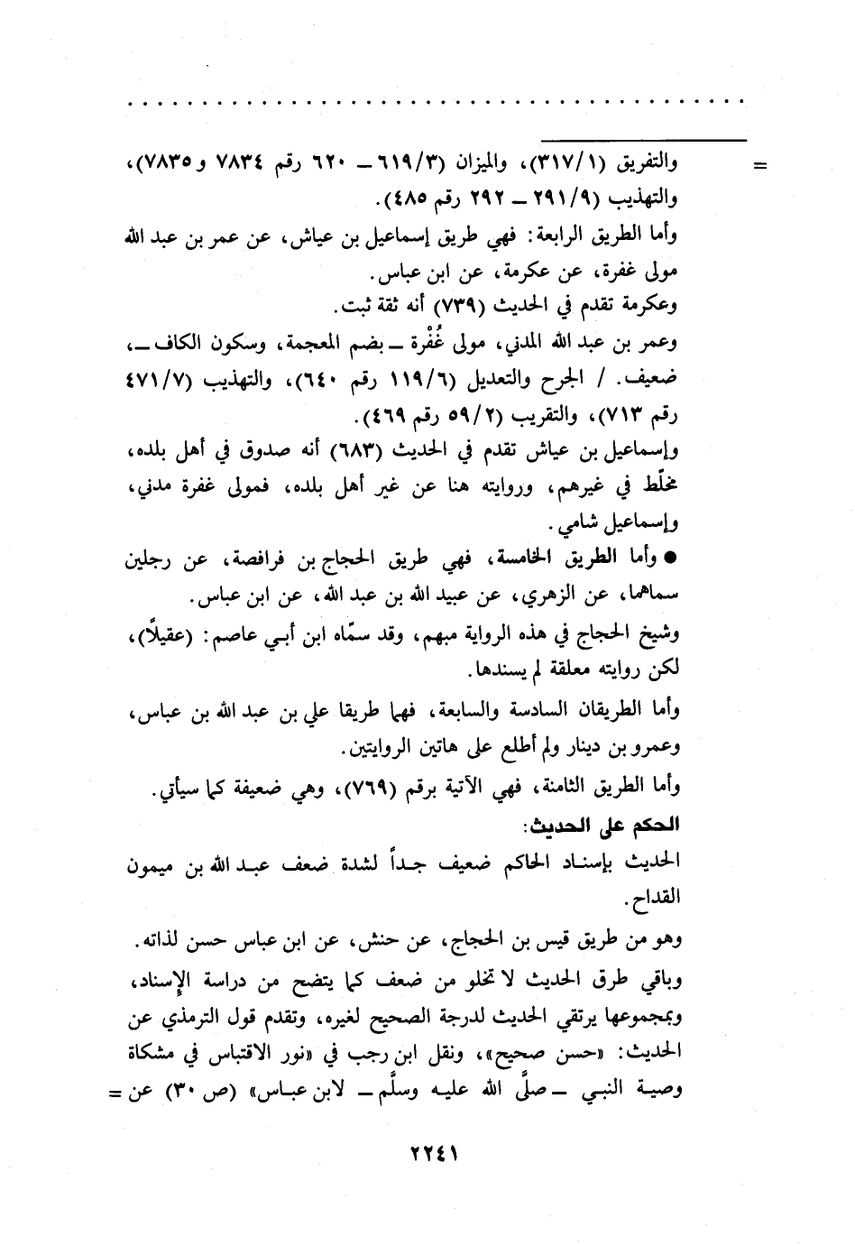 وباقي طرق الحديث لا تخلو من ضعف كما يتضح من دراسة الإسناد، وبمجموعها يرتقي الحديث لدرجة الصحيح لغيره، وتقدم قول الترمذي عن الحديث: "حسن صحيح"، ونقل ابن رجب في "نور الاقتباس في مشكاة وصية النبي -صلى الله عليه وسلم- لابن عباس" (ص 30) عن =