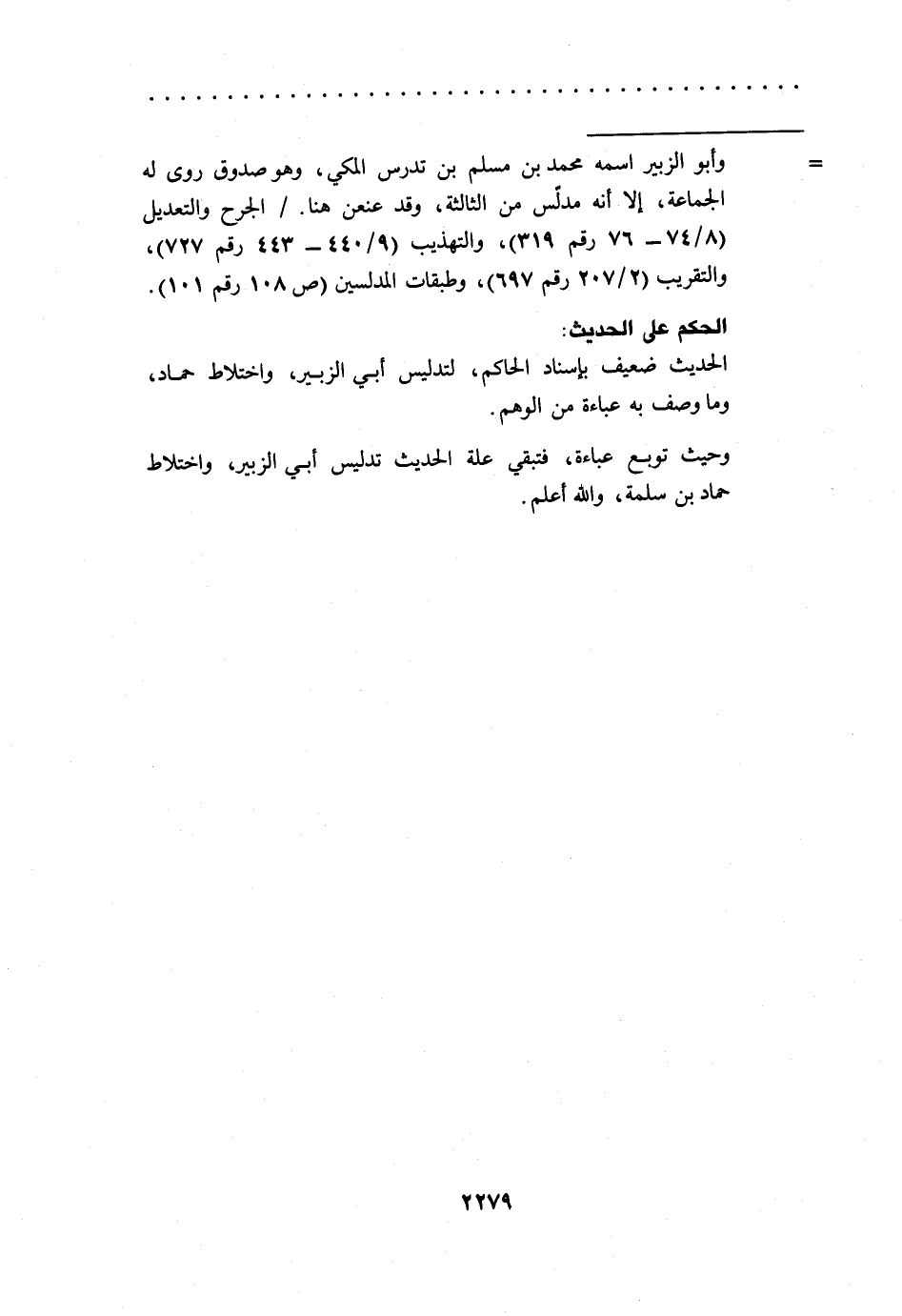 = وأبو الزبير اسمه محمد بن مسلم بن تدرس المكي، وهو صدوق روى له الجماعة، إلا أنه مدلّس من الثالثة، وقد عنعن هنا./ الجرح والتعديل (8/ 74 - 76 رقم 319)، والتهذيب (9/ 440 - 443 رقم 727)، والتقريب (2/ 207رقم 697)، وطبقات المدلسين (ص108رقم101).