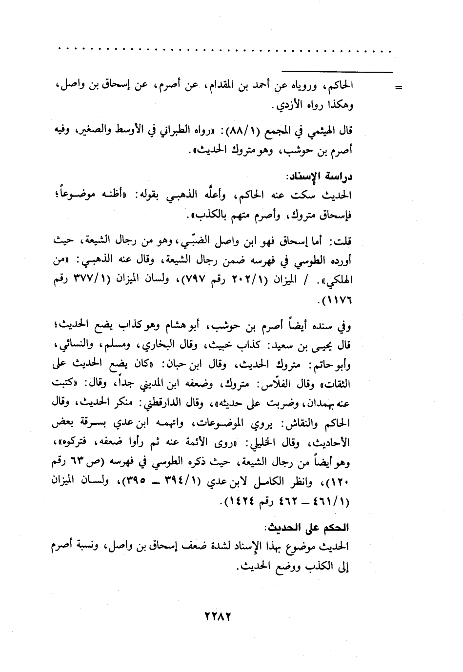 قلت: أما إسحاق فهو ابن واصل الضّبي، وهو من رجال الشيعة، حيث أورده الطوسي في فهرسه ضمن رجال الشيعة، وقال عنه الذهبي: "من الهلكي"./ الميزان (1/ 202رقم 797)، ولسان الميزان (1/ 377رقم 1176).