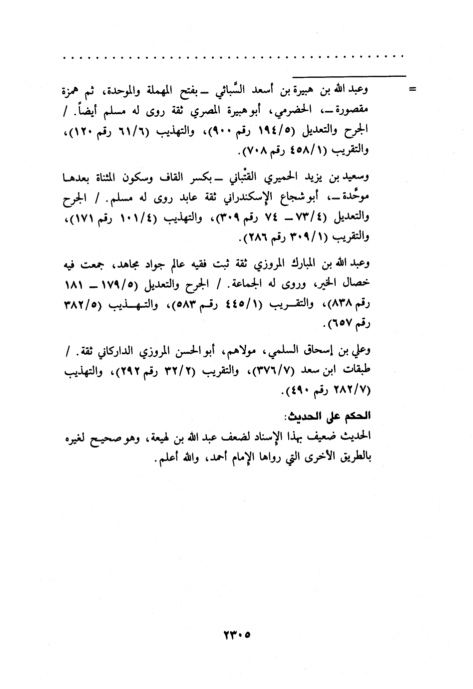 وعبد الله بن المبارك المروزي ثقة ثبت فقيه عالم جواد مجاهد، جمعت فيه خصال الخير، وروى له الجماعة./ الجرح والتعديل (5/ 179 - 181 رقم 838)، والتقريب (1/ 445رقم 583)، والتهذيب (5/ 382 رقم 657).