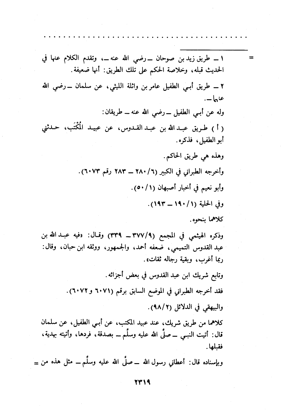 = 1 - طريق زيد بن صوحان -رضي الله عنه-، وتقدم الكلام عنها في الحديث قبله، وخلاصة الحكم على تلك الطريق: أنها ضعيفة.