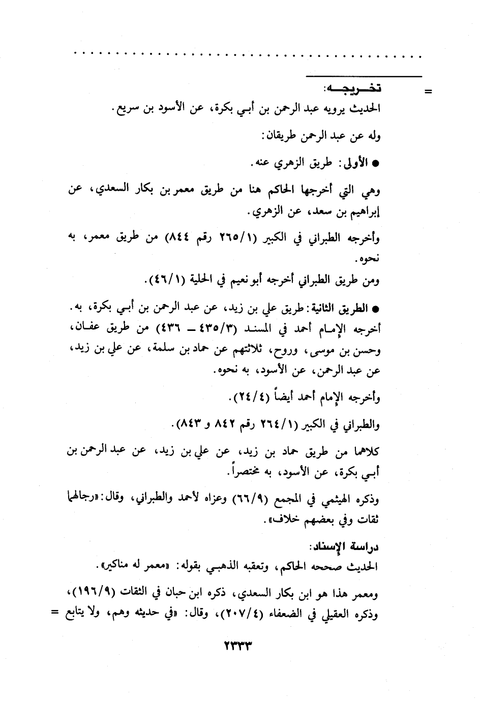 الحديث يرويه عبد الرحمن بن أبي بكرة، عن الأسود بن سريع.