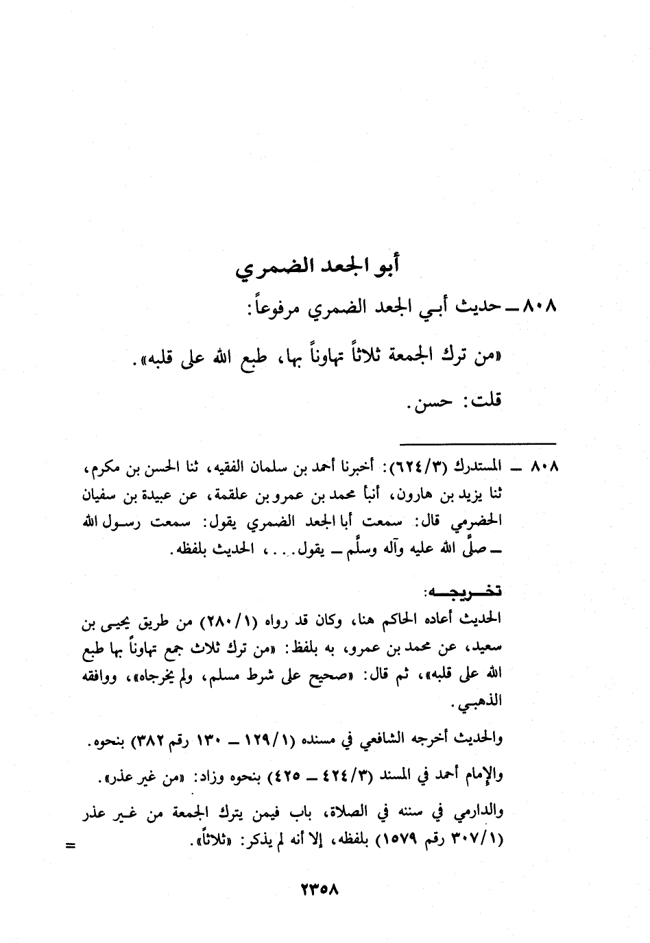 808 - حديث أبى الجعد الضمري مرفوعاً: