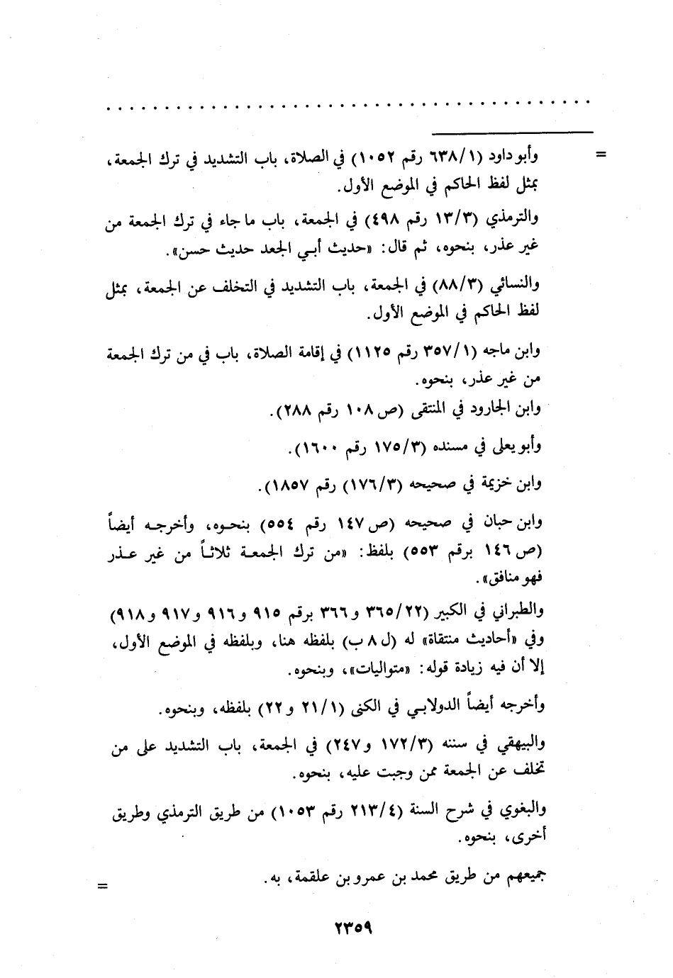 وابن حبان في صحيحه (ص 147 رقم 554) بنحوه، وأخرجه أيضاً (ص 146 برقم 553) بلفظ: "من ترك الجمعة ثلاثاً من غير عذر فهو منافق".