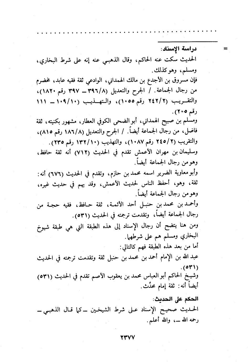 ومن هنا يتضح أن رجال الِإسناد إلى هذه الطبقة التي هي طبقة شيوخ البخاري ومسلم هم على شرطهما.