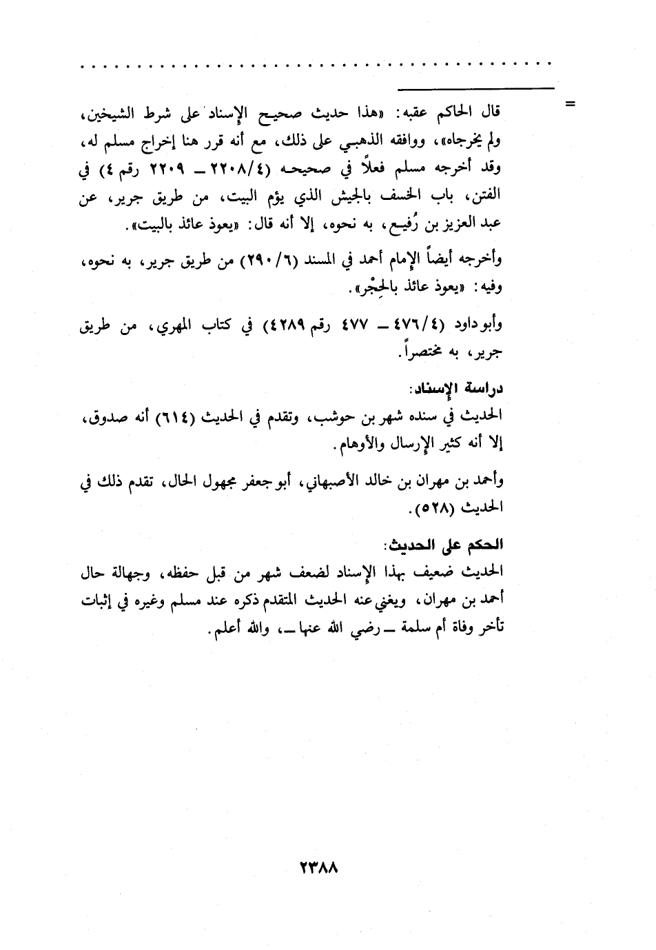 الحديث ضعيف بهذا الإسناد لضعف شهر من قبل حفظه، وجهالة حال أحمد بن مهران، ويغني عنه الحديث المتقدم ذكره عند مسلم وغيره في إثبات تأخر وفاة أم سلمة -رضي الله عنها-، والله أعلم.