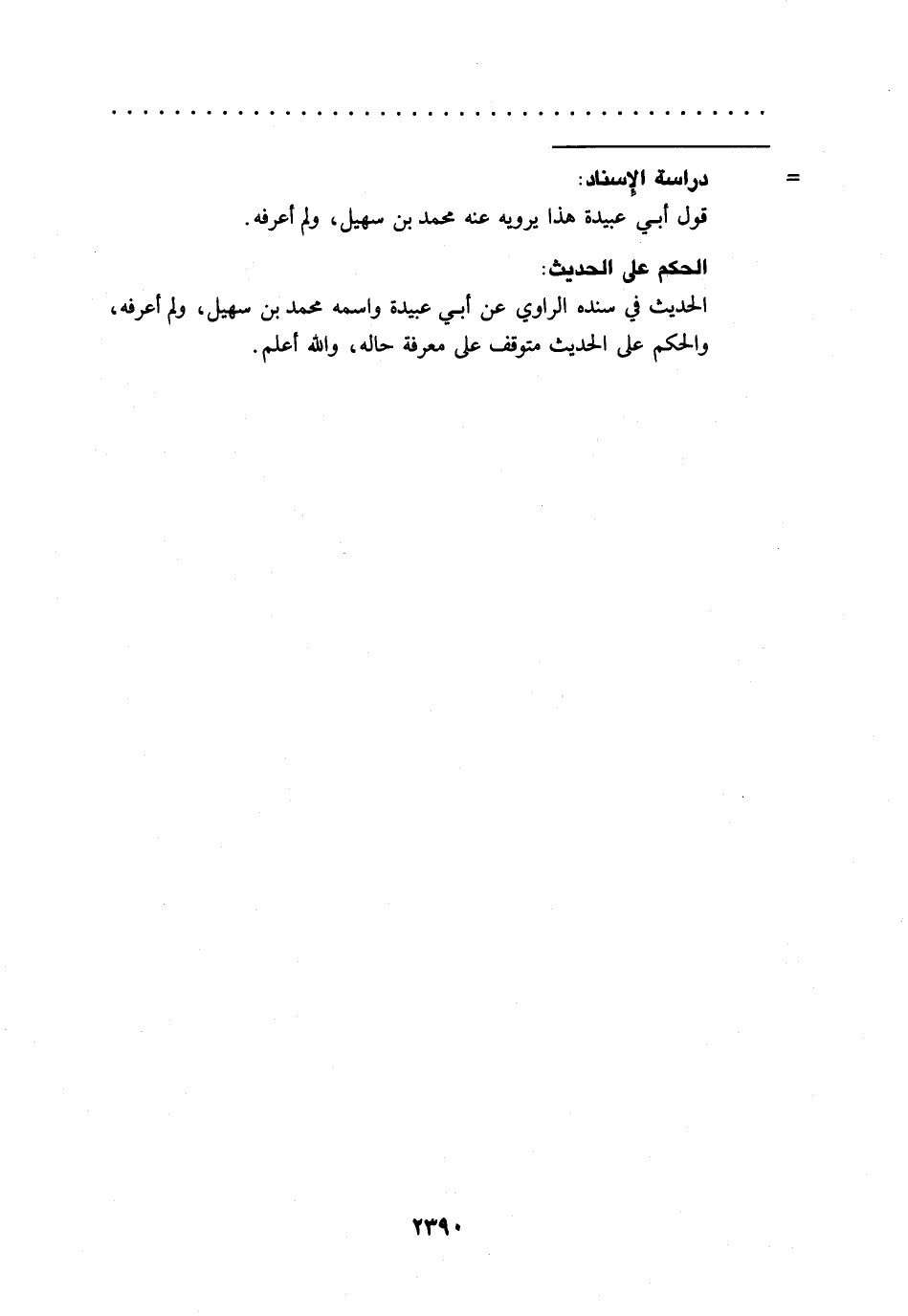 الحديث في سنده الراوي عن أبي عبيدة واسمه محمد بن سهيل، ولم أعرفه، والحكم على الحديث متوقف على معرفة حاله، والله أعلم.
