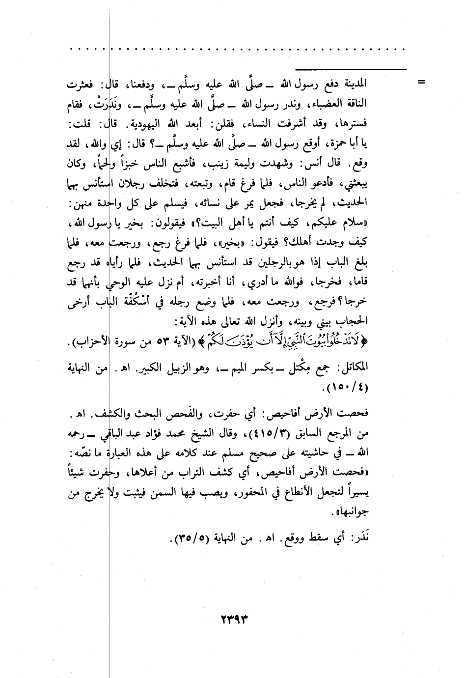 {لَا تَدْخُلُوا بُيُوتَ النَّبِيِّ إِلَّا أَنْ يُؤْذَنَ لَكُمْ (53)} [الأحزاب: 53] (الآية 53 من سورة الأحزاب).