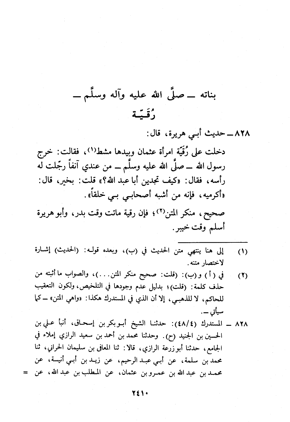 صحيح، منكر المتن (¬2)؛ فإن رقية ماتت وقت بدر، وأبو هريرة أسلم وقت خيبر.