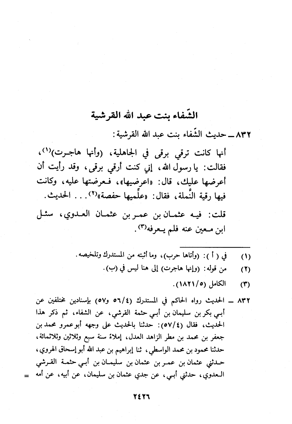 832 - حديث الشّفاء بنت عبد الله القرشية: