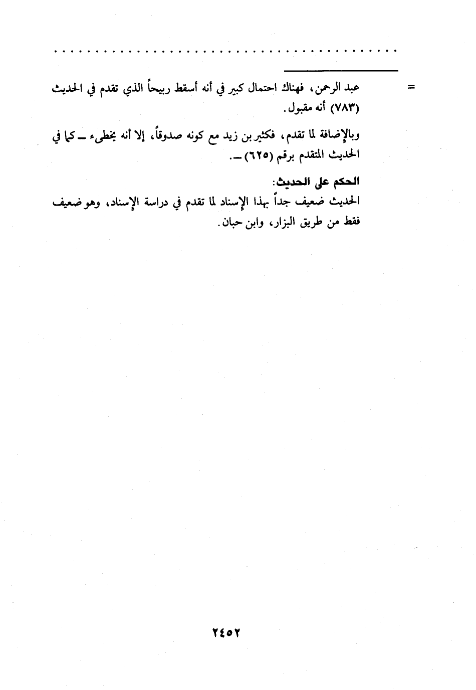 = عبد الرحمن، فهناك احتمال كبير في أنه أسقط ربيحاً الذي تقدم في الحديث (783) أنه مقبول.