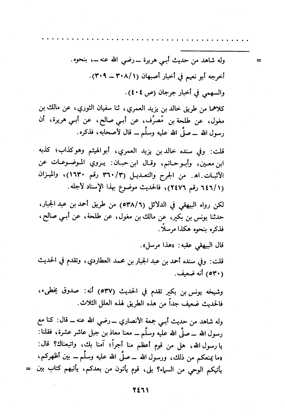 كلاهما من طريق خالد بن يزيد العمري، ثنا سفيان الثوري، عن مالك بن مغول، عن طلحة بن مُصرِّف، عن أبي صالح، عن أبي هريرة، أن رسول الله -صلى الله عليه وسلم- قال لأصحابه، فذكره.