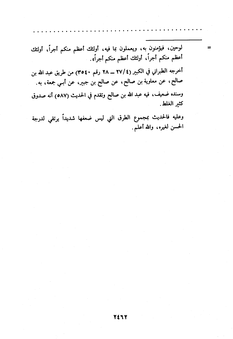 أخرجه الطبراني في الكبير (4/ 27 - 28 رقم3540) من طريق عبد الله بن صالح، عن معاوية بن صالح، عن صالح بن جبير، عن أبي جمعة، به.