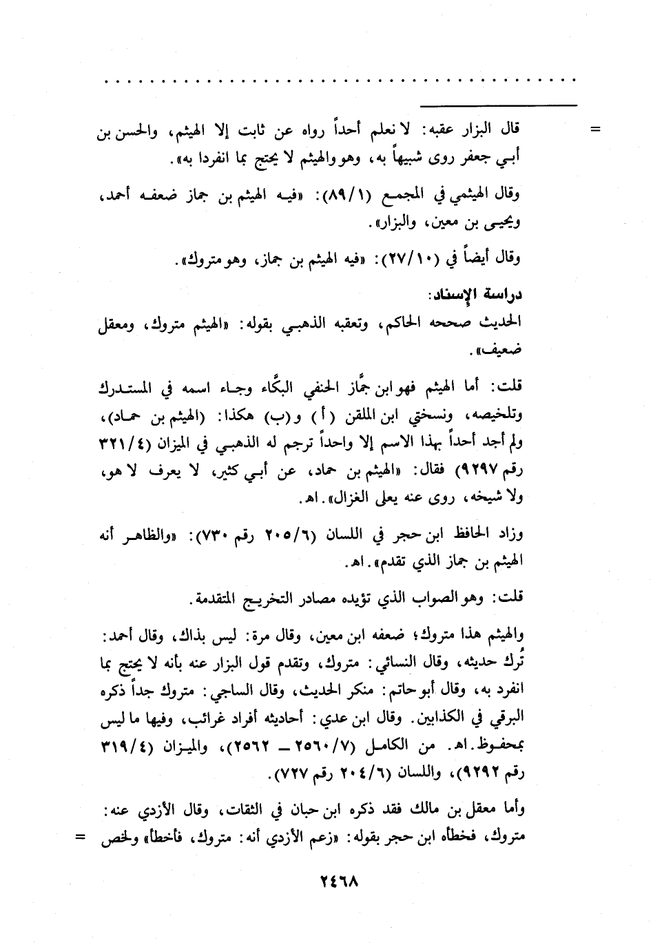 وزاد الحافظ ابن حجر في اللسان (6/ 205رقم 730): "والظاهر أنه الهيثم بن جماز الذي تقدم". اهـ.