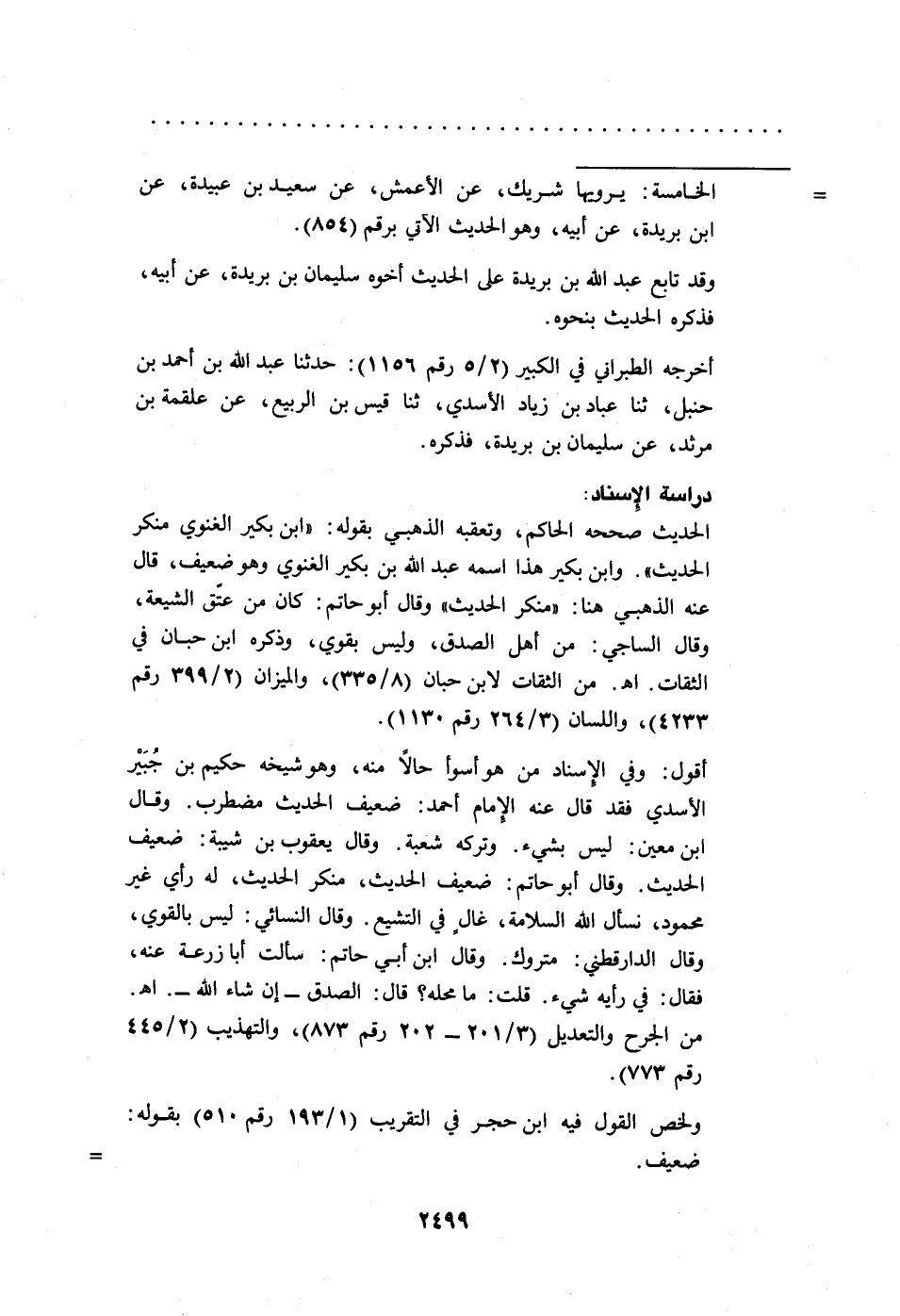 ولخص القول فيه ابن حجر في التقريب (1/ 193رقم 510) بقوله: ضعيف. =