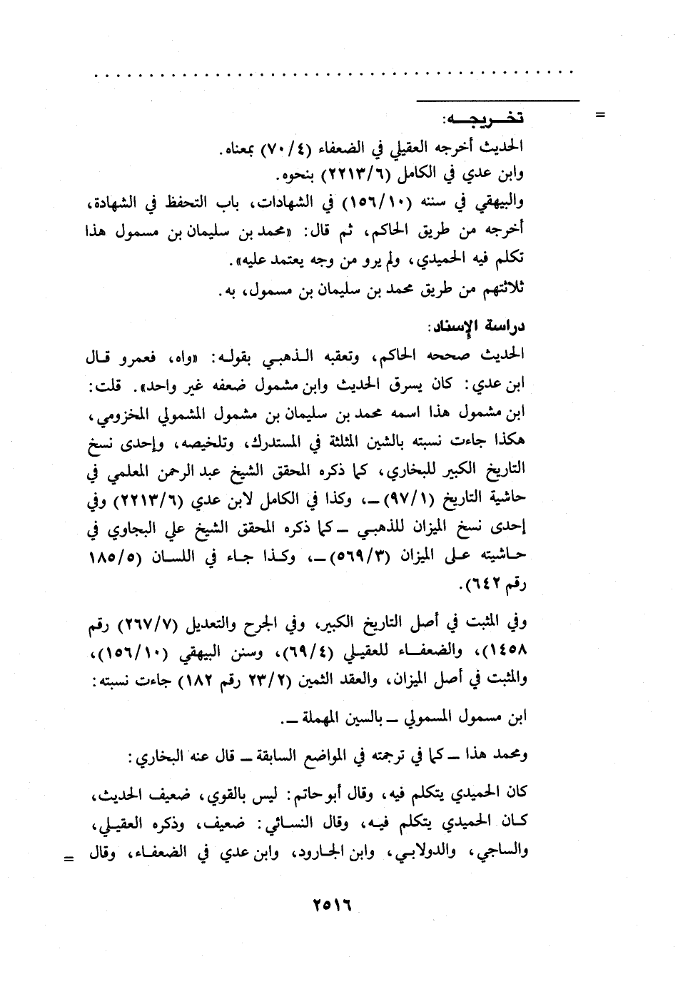 والبيهقي في سننه (10/ 156) في الشهادات، باب التحفظ في الشهادة، أخرجه من طريق الحاكم، ثم قال: "محمد بن سليمان بن مسمول هذا تكلم فيه الحميدي، ولم يرو من وجه يعتمد عليه".
