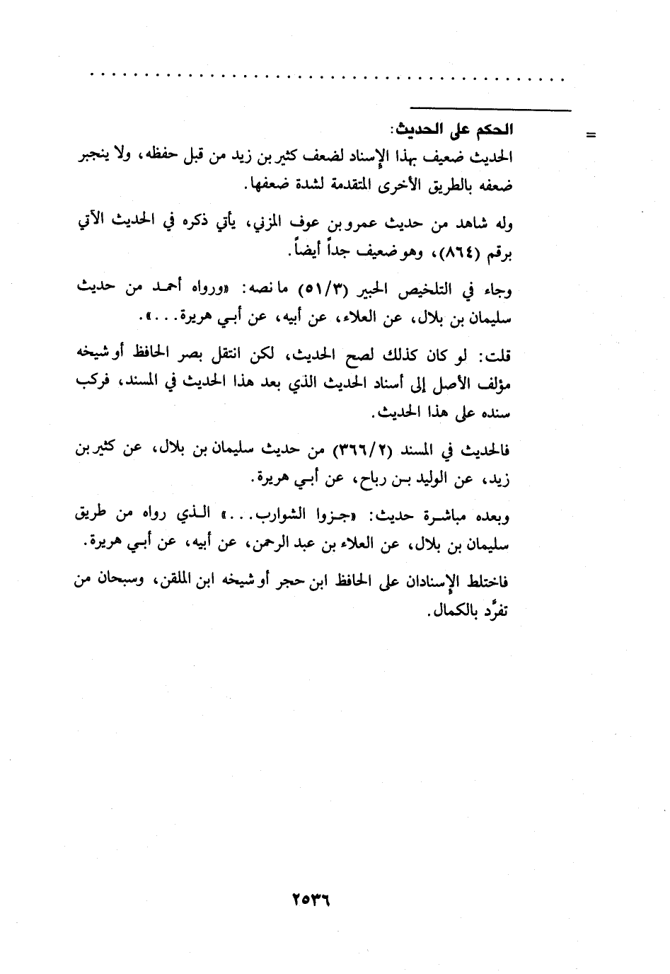 وجاء في التلخيص الحبير (3/ 51) ما نصه: "ورواه أحمد من حديث سليمان بن بلال، عن العلاء، عن أبيه، عن أبي هريرة ... ".