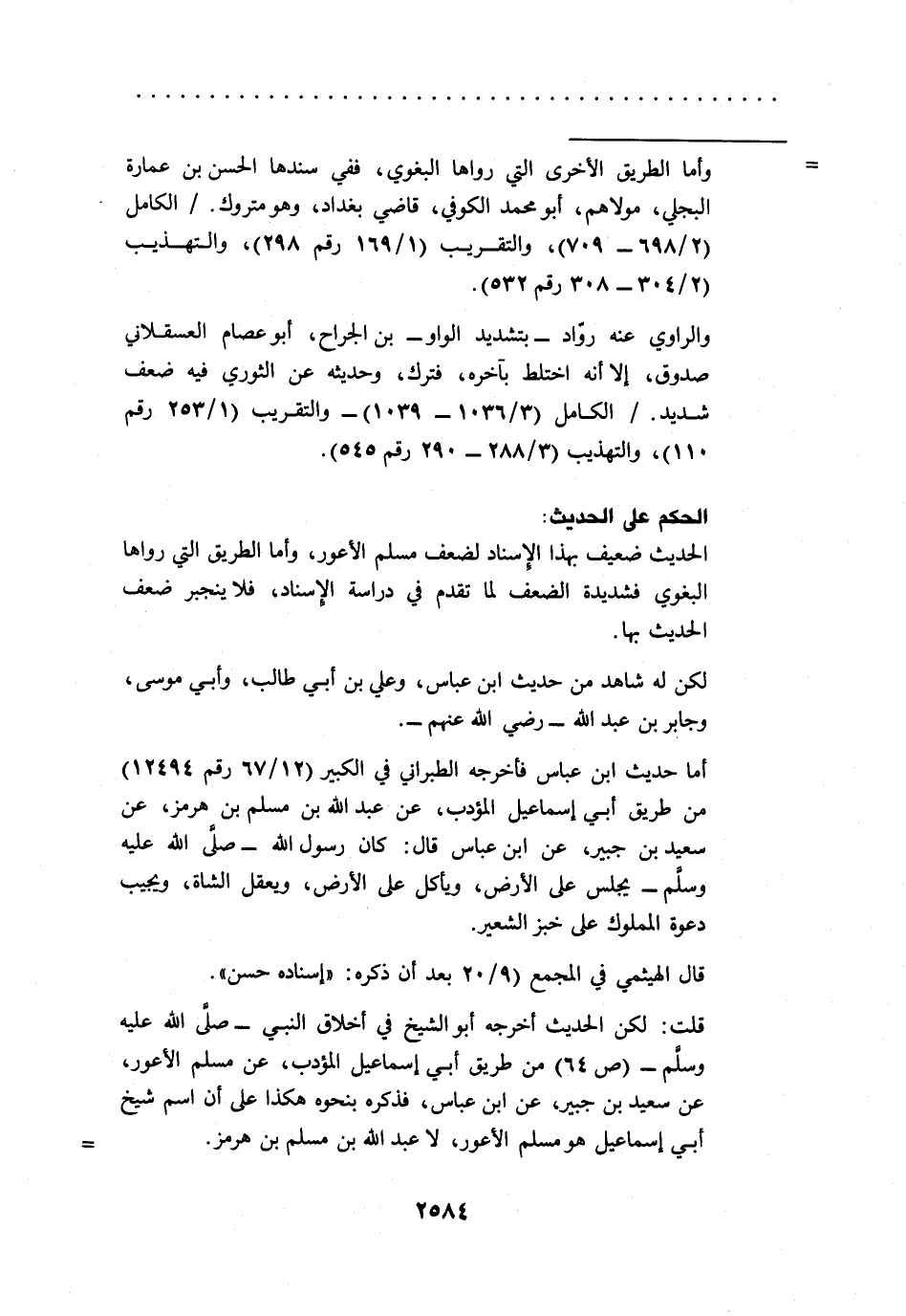 قلت: لكن الحديث أخرجه أبو الشيخ في أخلاق النبي -صلى الله عليه وسلم- (ص 64) من طريق أبي إسماعيل المؤدب، عن مسلم الأعور، عن سعيد بن جبير، عن ابن عباس، فذكره بنحوه هكذا على أن اسم شيخ أبي إسماعيل هو مسلم الأعور، لا عبد الله بن مسلم بن هرمز. =