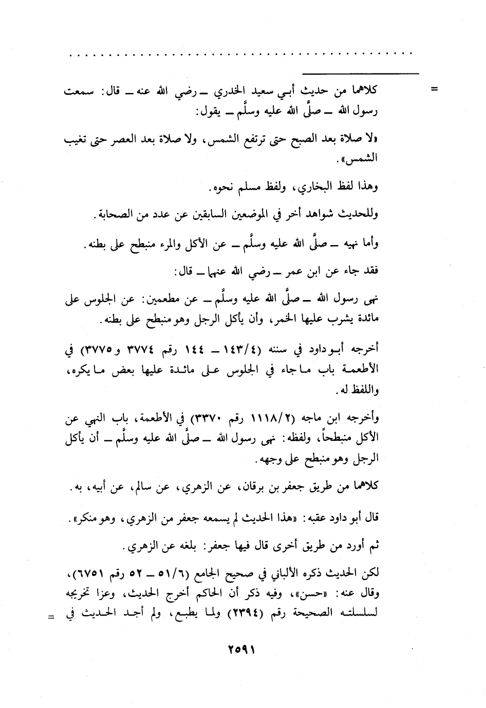"لا صلاة بعد الصبح حتى ترتفع الشمس، ولا صلاة بعد العصر حتى تغيب الشمس".