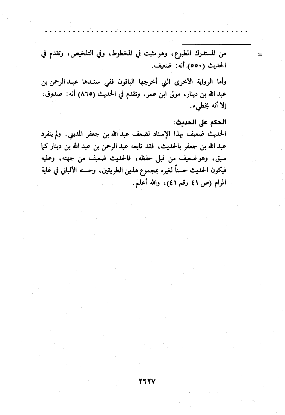 وأما الرواية الأخرى التي أخرجها الباقون ففي سندها عبد الرحمن بن عبد الله بن دينار، مولى ابن عمر، وتقدم في الحديث (865) أنه: صدوق، إلا أنه يخطيء.