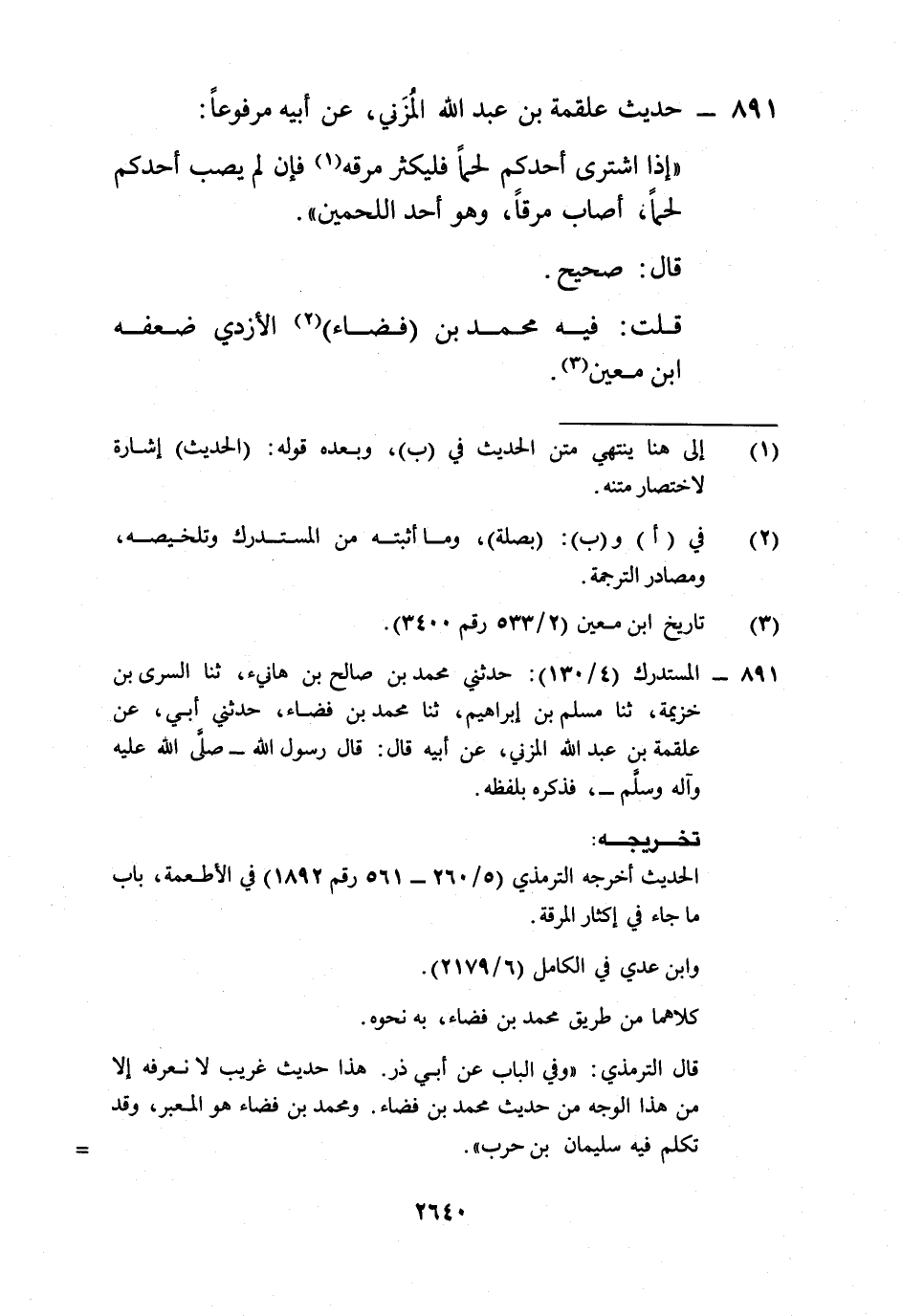 891 - المستدرك (4/ 130): حدثني محمد بن صالح بن هانيء، ثنا السرى بن خزيمة، ثنا مسلم بن إبراهيم، ثنا محمد بن فضاء، حدثني أبي، عن علقمة بن عبد الله المزني، عن أبيه قال: قال رسول الله -صلى الله عليه وآله وسلم-، فذكره بلفظه.