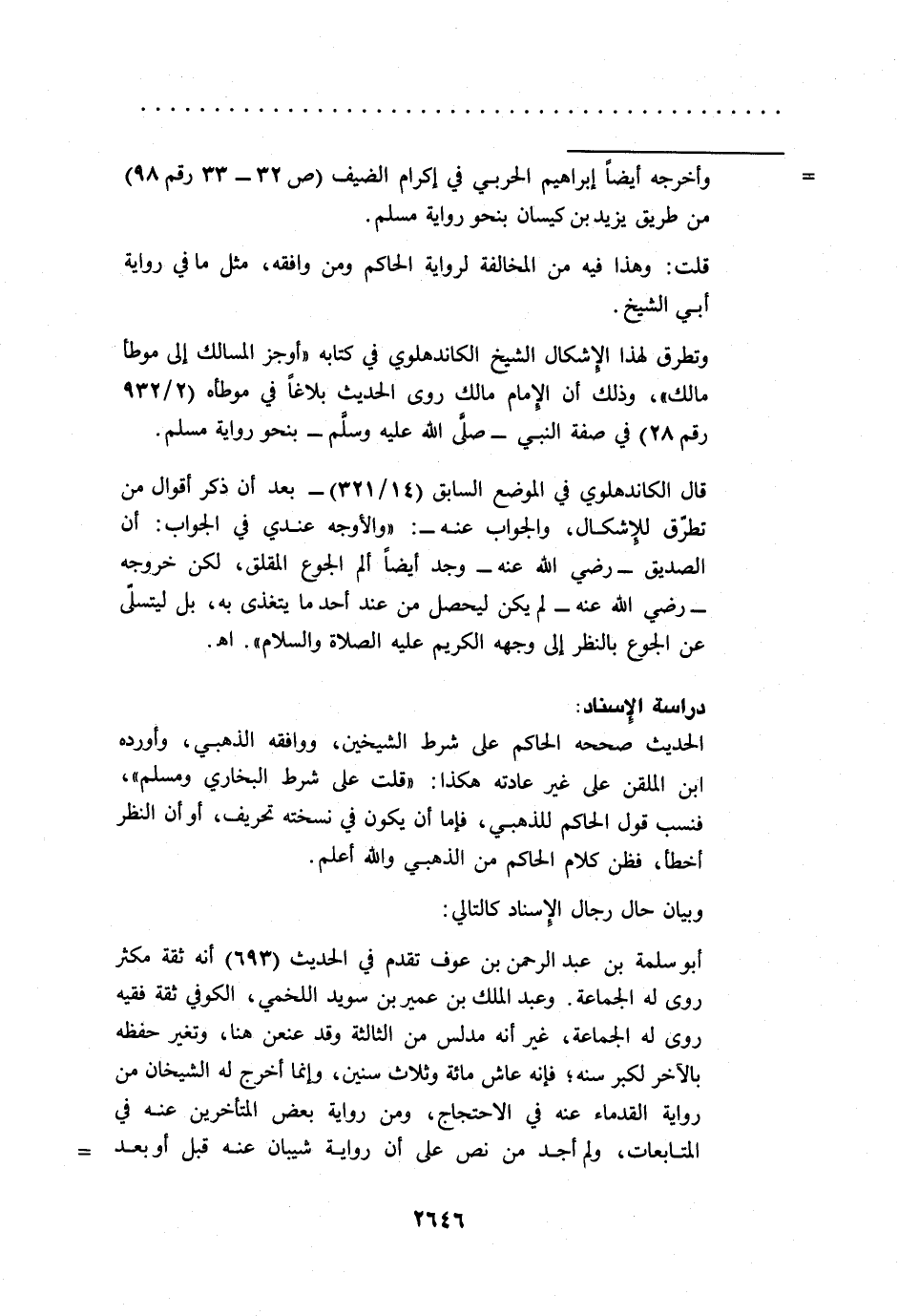 وتطرق لهذا الإشكال الشيخ الكاندهلوي في كتابه "أوجز المسالك إلى موطأ مالك"، وذلك أن الإمام مالك روى الحديث بلاغاً في موطاه (2/ 932 رقم 28) في صفة النبي -صلى الله عليه وسلم- بنحو رواية مسلم.