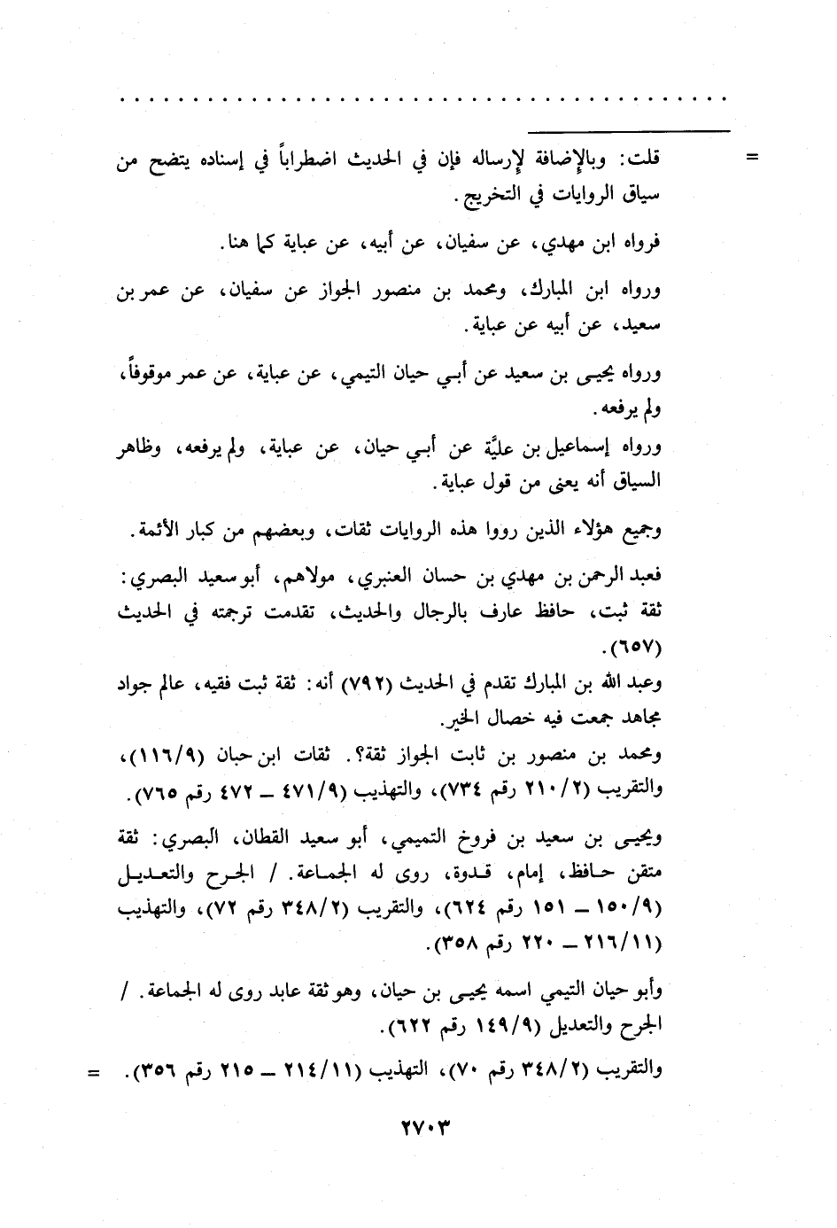 ورواه ابن المبارك، ومحمد بن منصور الجواز عن سفيان، عن عمر بن سعيد، عن أبيه عن عباية.