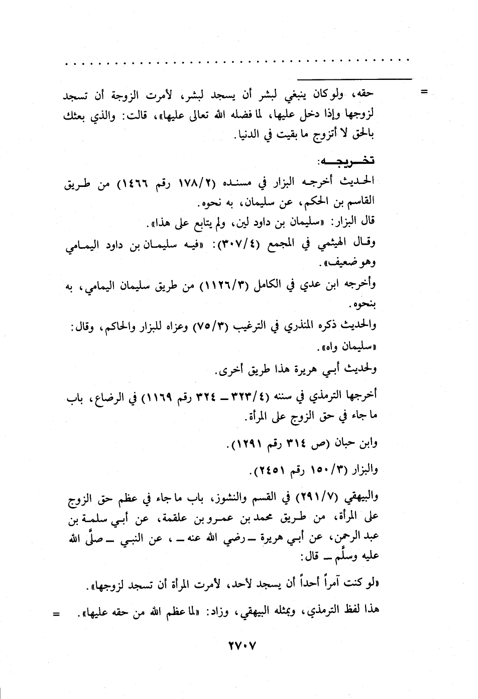 "لو كنت آمراً أحداً أن يسجد لأحد، لأمرت المرأة أن تسجد لزوجها".