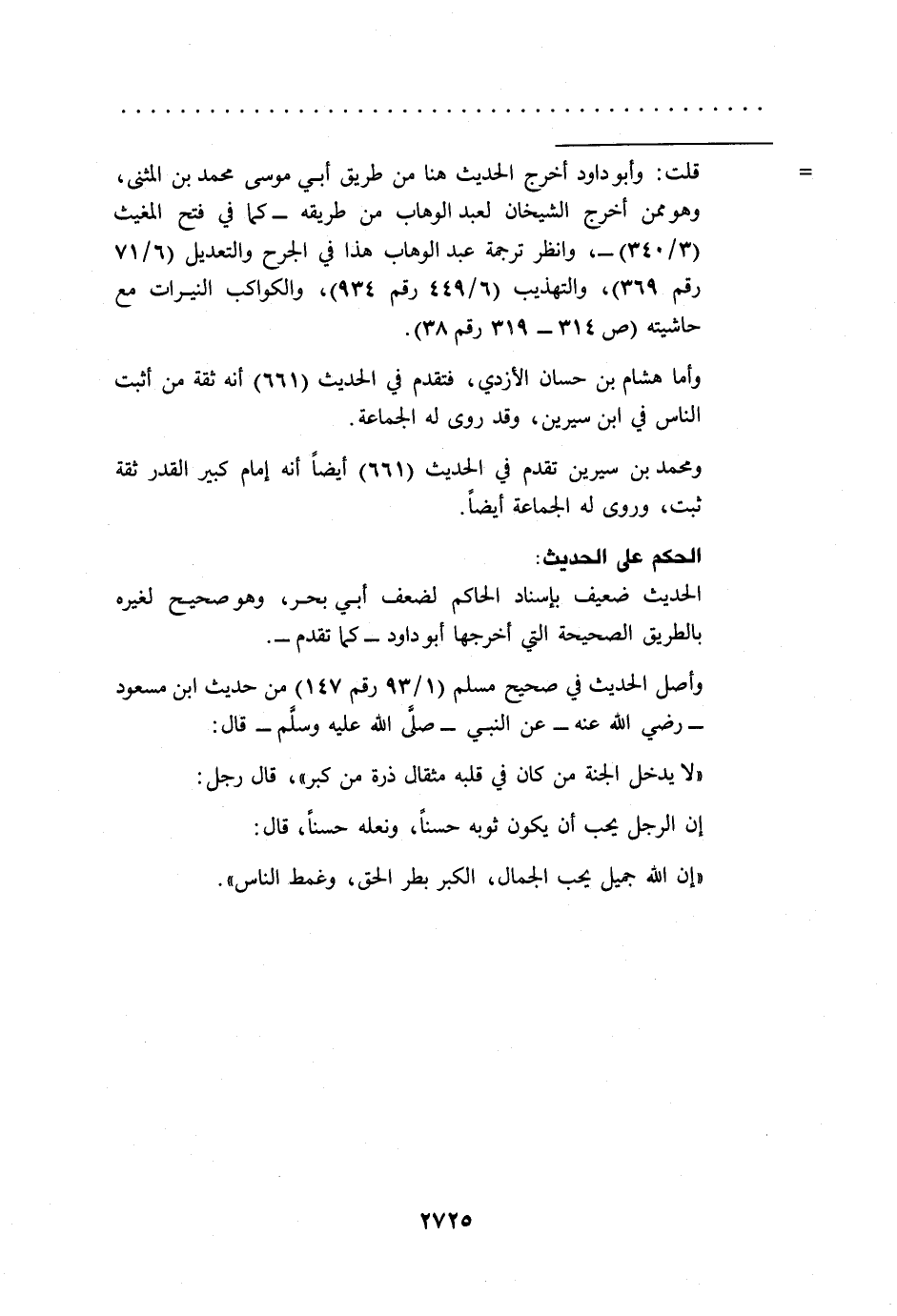 "إن الله جميل بحب الجمال، الكبر بطر الحق، وغمط الناس".