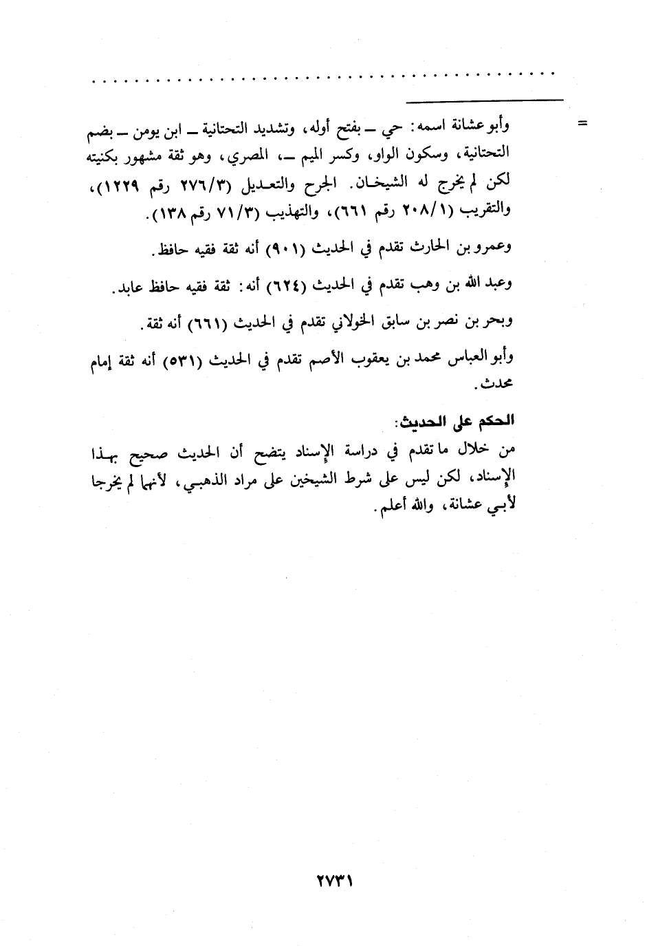 = وأبو عشانة اسمه: حي -بفتح أوله، وتشديد التحتانية- ابن يومن -بضم التحتانية، وسكون الواو، وكسر الميم- المصري، وهو ثقة مشهور بكنيته لكن لم يخرج له الشيخان. الجرح والتعديل (3/ 276 رقم 1229)، والتقريب (1/ 208 رقم 661)، والتهذيب (3/ 71 رقم 138).