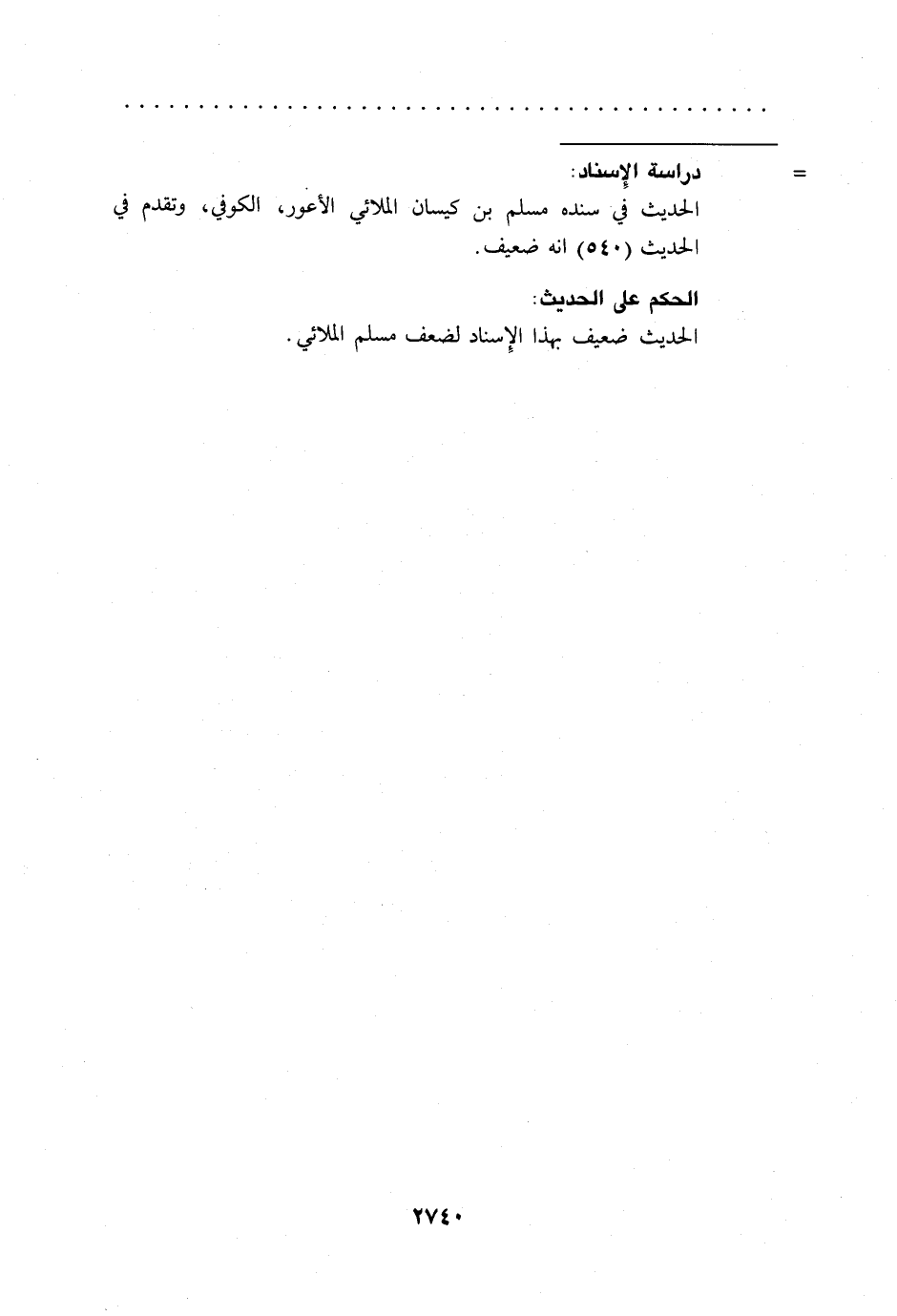 الحديث في سنده مسلم بن كيسان الملائي الأعور، الكوفي، وتقدم في الحديث (540) أنه ضعيف.