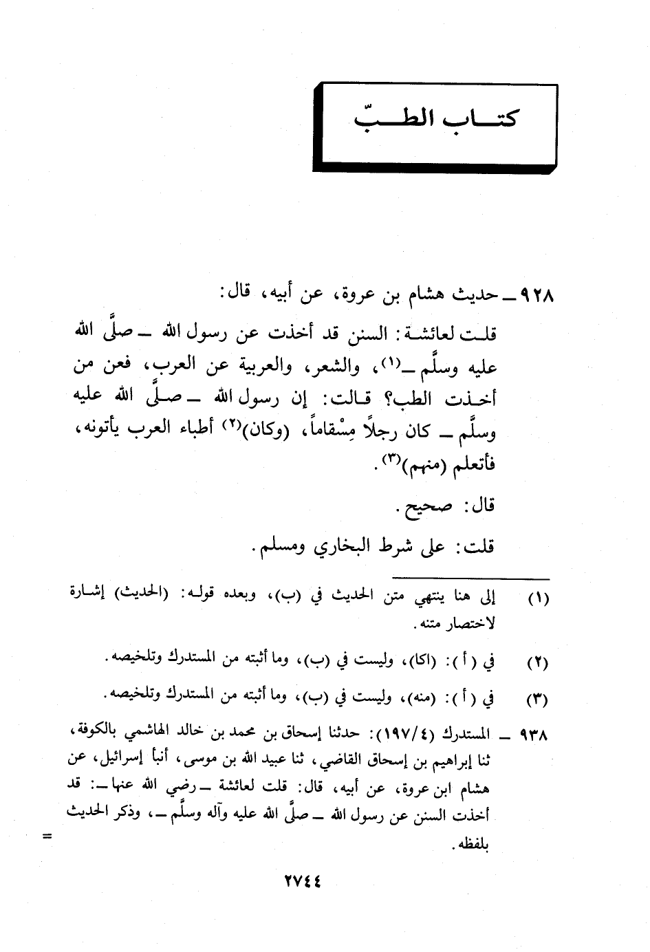 928 - حديث هشام بن عروة، عن أبيه، قال: