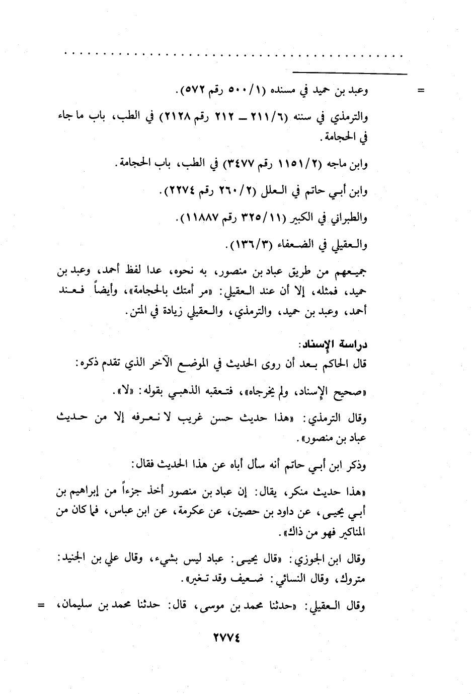 جميعهم من طريق عباد بن منصور، به نحوه، عدا لفظ أحمد، وعبد بن حميد، فمثله، إلا أن عند العقيلي: "مر أمتك بالحجامة"، وأيضاً فعند أحمد، وعبد بن حميد، والترمذي، والعقيلي زيادة في المتن.