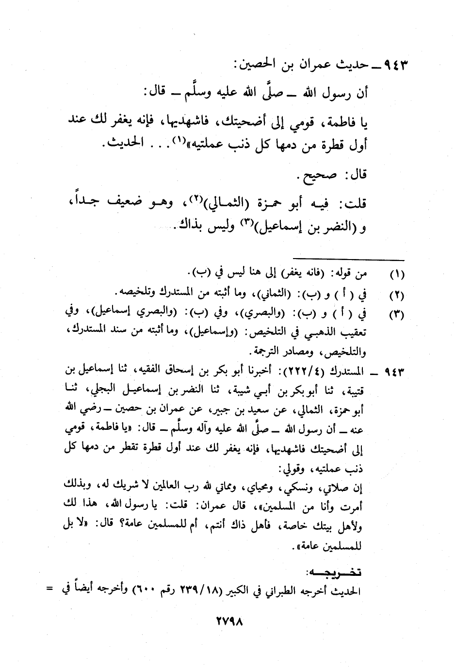 943 - حديث عمران بن الحصين: