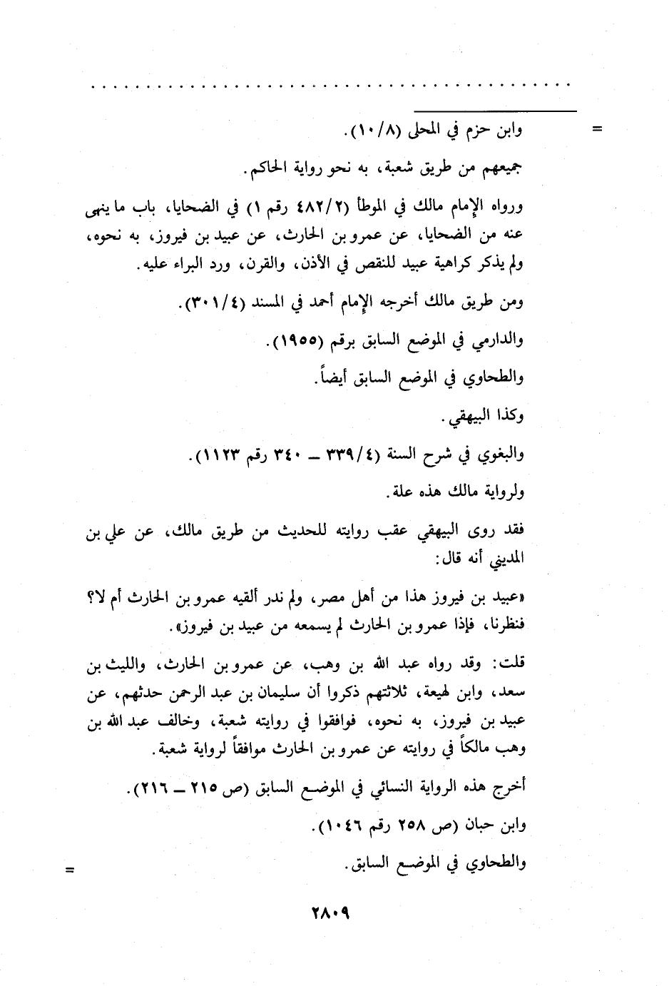 ورواه الإمام مالك في الموطأ (2/ 482 رقم 1) في الضحايا، باب ما ينهى عنه من الضحايا، عن عمرو بن الحارث، عن عبيد بن فيروز، به نحوه، ولم يذكر كراهية عبيد للنقص في الأذن، والقرن، ورد البراء عليه.