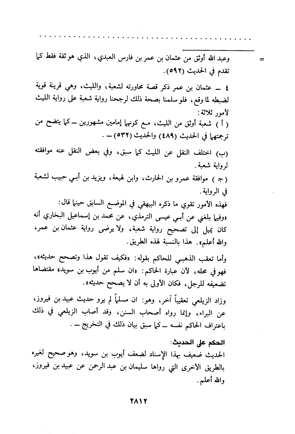 = وعبد الله أوثق من عثمان بن عمر بن فارس العبدي، الذي هو ثقة فقط كما تقدم في الحديث (592).